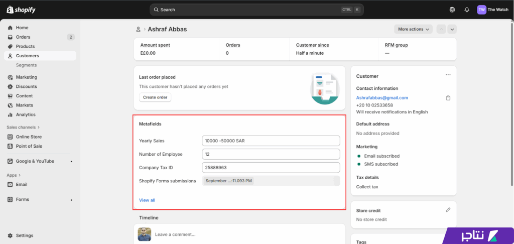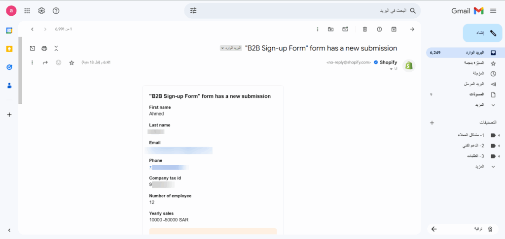 بهذا الشكل استطعت إنشاء نموذج تسجيل B2B مخصص على شوبيفاي يلبي احتياجات الشركات ويجمع البيانات المهمة مثل السجل التجاري وحجم الطلب، بدلًا من الاعتماد على نموذج التسجيل التقليدي المحدود. هذا التخصيص جعل عملية إدارة العملاء أسهل، وساعد على فرز العملاء الجادين من البداية قبل منحهم صلاحية الوصول إلى أسعار الجملة والعروض الخاصة.
