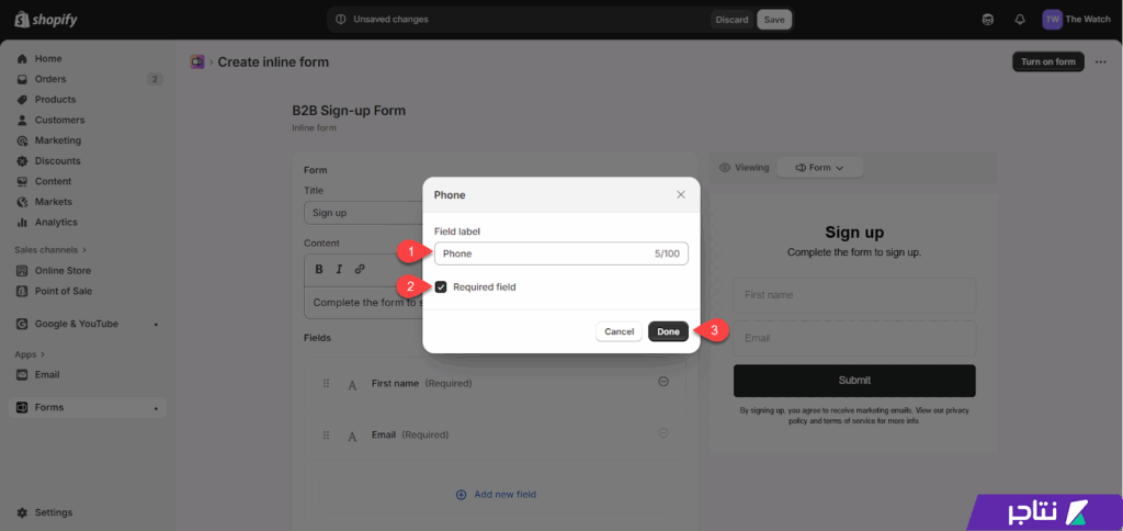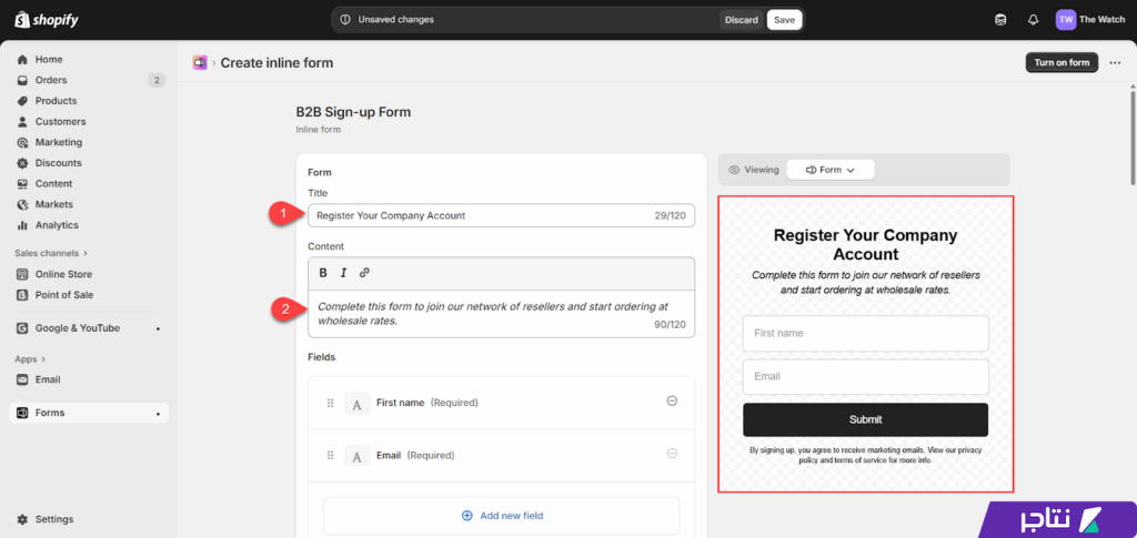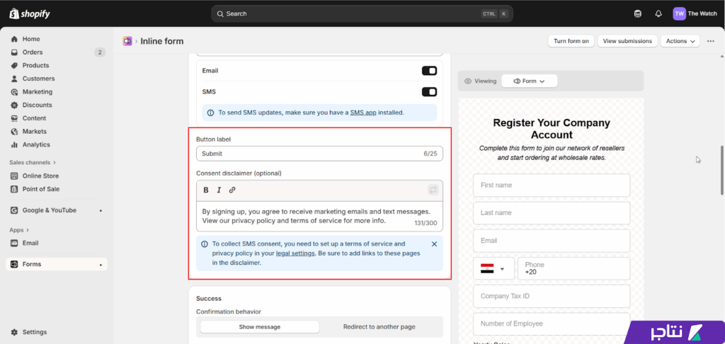 كيف أنشأت نموذج تسجيل B2B على شوبيفاي؟