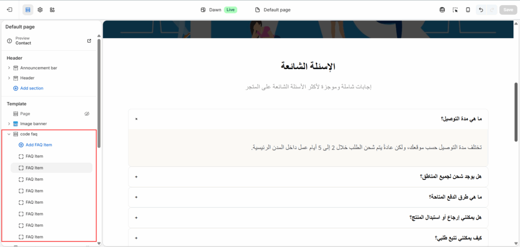 3- تطوير قسم الأسئلة الشائعة على قالب المتجر
