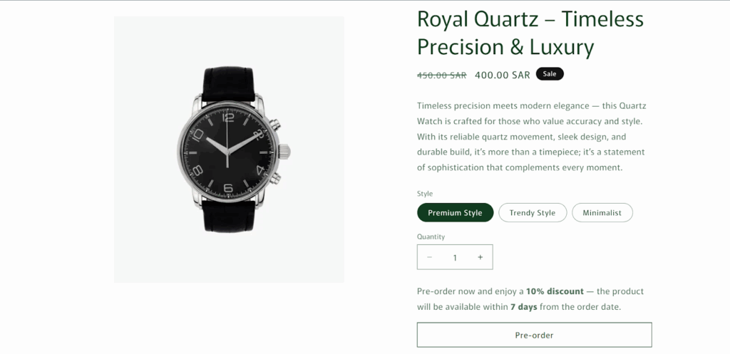عندما أضيف منتجات جديدة إلى متجري، لا أستطيع في البداية تحديد حجم الإقبال عليها أو قياس معدل الطلب بدقة. لذلك قررت تطبيق استراتيجية البيع المسبق (Pre-order) على المنتجات الجديدة، إذ تساعدني على بيع المنتجات قبل توافرها فعليًا في المخزن، مما يمنحني تصورًا أوضح عن حجم الطلب، إضافةً إلى تحقيق مبيعات مبكرة.