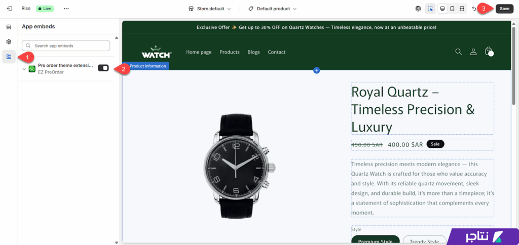 03- تفعيل البيع المسبق على قالب المتجر