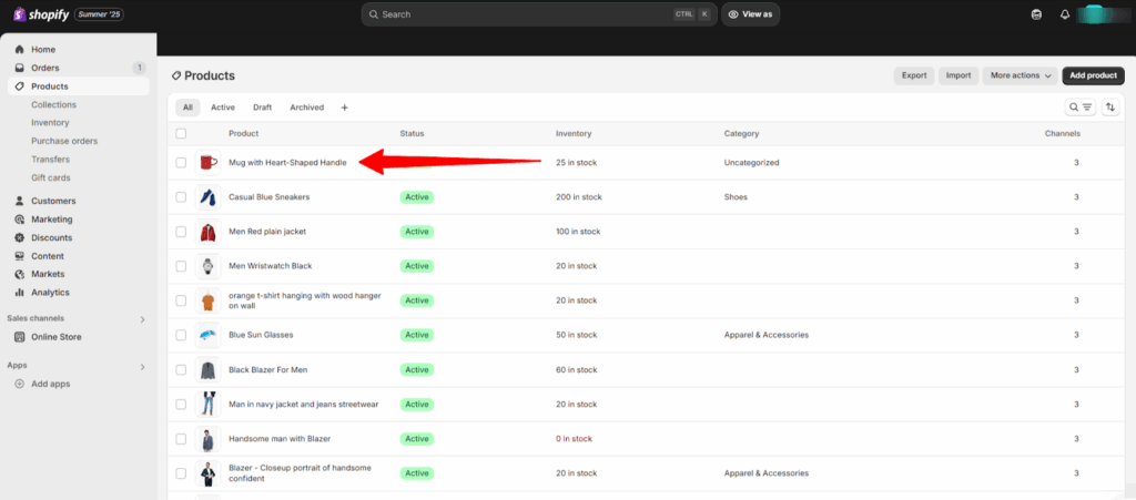 - من القائمة الرئيسية على اليسار في شوبيفاي، اذهب إلى المنتجات