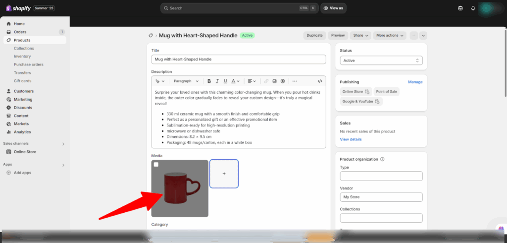 - بعد إضافة كل صور المنتج بنفس الطريقة، اضغط على حفظ المنتج لحفظ التعديلات التي أجريتها.