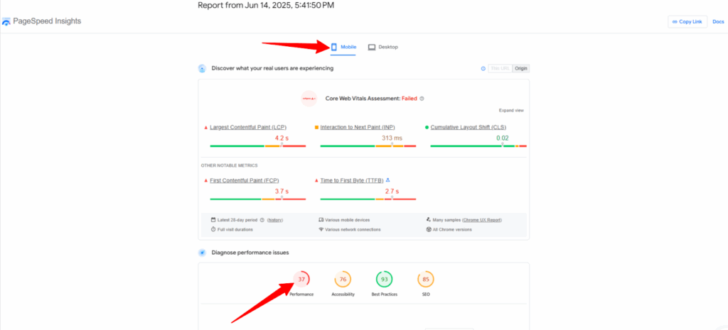 - ارصد أي مشاكل في أداء الصفحة لإجراء التحسينات إن كانت المشكلة بسبب الحجم أو غيره.