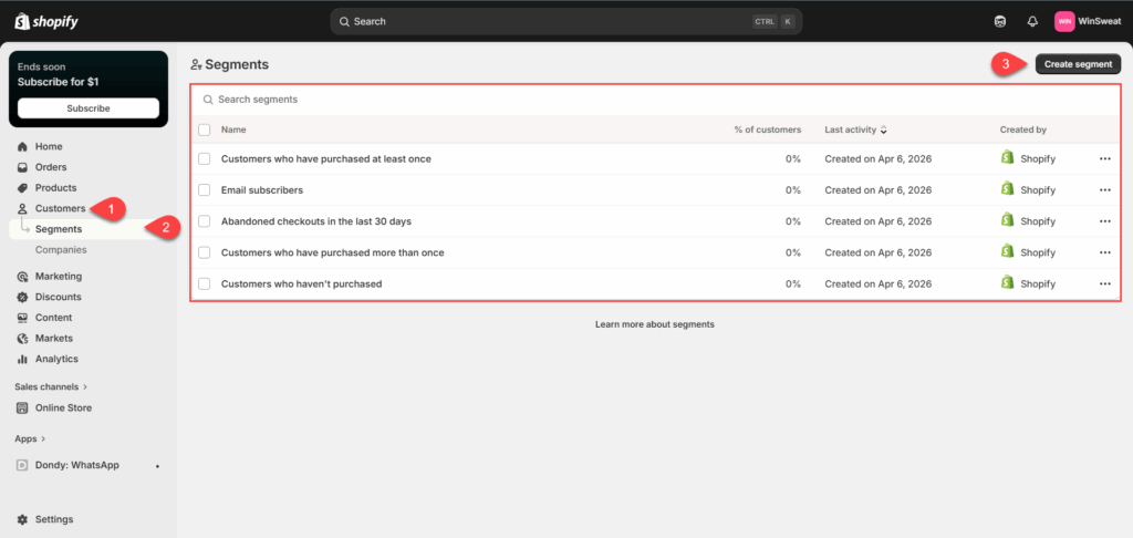 وفي حال رغبت في إنشاء فئة مخصصة جديدة، يمكنك الضغط على زر Create Segment كما هو موضح في الصورة التالية: